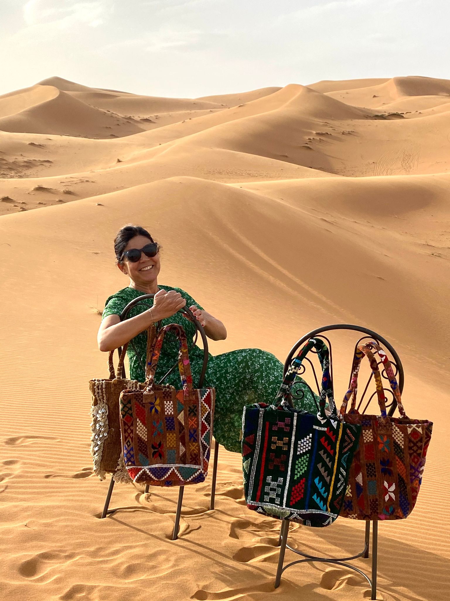 Arrivata a Marrakech aiutavo mio marito che, nel frattempo, aveva aperto una sua agenzia di tours in tutto il Marocco ma mi ero cercata anche un lavoro per conto mio e gestivo un riad in medina. Poi è arrivato il Covid-19 e, quindi, il turismo si è bloccato e, con esso, anche il lavoro. Il confinamento, però, è servito a noi come coppia. Abbiamo finalmente vissuto per 3 mesi, 24 ore su 24, sempre insieme, superando la prova della convivenza. Per fortuna, avevamo messo da parte qualche soldo, che ci ha permesso di vivere anche senza entrate. Io, durante il lock-down, ho fatto dei corsi di marketing online e poi ho messo a punto e finalizzato un mio progetto: creare un piccolo brand di borse locali realizzate con tappeti berberi, che ho poi lanciato dopo il Covid, nel gennaio 2021.
